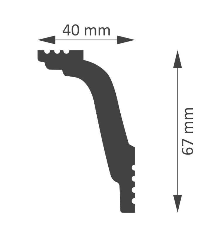 Dekoratívna stropná lišta je skvelý spôsob, ako dodať interiéru charakter. Vďaka bohatej kolekcii vzorov dokážeme dodať eleganciu, štýl a originalitu každému priestoru. Ľahký a ľahko zostaviteľný. Dokonale maskujú nerovnosti stien a ich drobné chyby. Sú vhodné na maľovanie vodou riediteľnými farbami (akrylový latex a pod.). Od elegantného glamour po jednoduché, moderné formy. Polystyrénová lišta. Dĺžka lišty je 2,0 m.